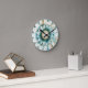 Blue Teal Gold Floral Mandala Round Clock