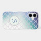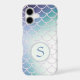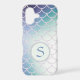 This gorgeous phone case features your monogram in blue on a pale teal circle banner lined in a glittery frame. The banner is placed on a pretty gradient background that is covered with glittery fish scales. Unique with colour that almost glows! *Please note - the image is printed and contains no actual glitter.