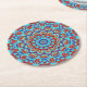 Blue Teal Leaf Floral Mandala Boho Round Paper Coaster