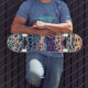 Blue Teal Lilac White Acrylic Abstract Fluid Art Skateboard