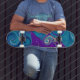 Blue, Teal, Purple Swirled Marble Fluid Art skateboard.
