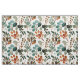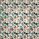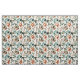 Pretty fabric with blue/teal, rust/burnt orange, and sage green watercolor leaves on white.