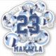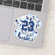 This team spirit volleyball sticker for girls or boys features the image of a bunch of varied size navy blue, light blue and white volleyballs, upon which you can customise the athlete's name, jersey number, team name and mascot name - by katz_d_zynes