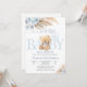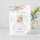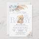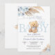 Celebrate the arrival of a sweet little one with this charming blue teddy bear baby shower invitation. Featuring soft pastel tones, elegant blue roses, pampas grass, and balloons, this design blends whimsical and modern style for a memorable event. Perfect for honouring parents-to-be, it includes customisable details for names, date, time, and location. A delightful choice for baby boy showers, this invitation adds warmth and joy to your celebration while making guests feel special.