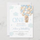 Blue Teddy Bear Balloon Beary First Birthday Invitation