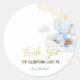 Cute baby shower invitation features blue teddy bear, stars, and clouds.