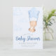 Blue Teddy Bear with Star Balloon Boy Baby Shower Invitation