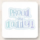 Shades of blue text Proud New Daddy keepsakes, mousepads, notebooks,tiles, ornaments, magnets, and other new daddy gear!