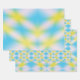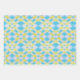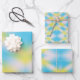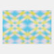 A cute set of wrapping papers with a tie dye pattern in blue, yellow, and white colours. Each paper has a different close up of the pattern, making the set coordinated.