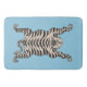 Blue tiger bath mat is a bathroom mat that features a Tibetan tiger illustration and the perfect animal print to bring into your bathroom decor for a wild jungle and tropical style. It works with a boho and eclectic style and is a colorful tiger bathroom rug. The bengal tiger mat is bright, bold and fun bathroom accessory.