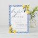 Gather your loved ones together for a special celebration with this chic invitation tailored specifically for your bridal shower. Delicately crafted with a sophisticated Blue Tile on the background and Lemons on the corners. With navy blue handwritten script set, this invitation exudes elegance.