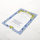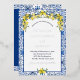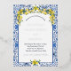 Personalise this beautiful Mediterranean Italian Wedding Invitation and set the tone for your dream destination wedding with this elegant design inspired by the charm of the Amalfi Coast. A vibrant arch of yellow lemons intertwined with lush greenery creates a stunning focal point, beautifully complementing a classical blue and white Italian tile border. The invitation features a blend of modern and script fonts in navy blue and shimmering foil against a crisp white background, capturing the essence of a romantic summer wedding. Perfect for couples celebrating love with a touch of Mediterranean citrus fruit elegance.