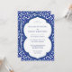 This elegant engagement party invitation showcases a striking blue and white Mediterranean tile design, framed in a graceful arched shape that adds a timeless and sophisticated touch. The intricate pattern evokes classic coastal charm, while the clean typography keeps the layout refined and easy to read.