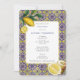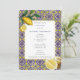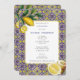 Blue Tile Mediterranean Lemons Christening Baptism Invitation