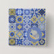 A cool design in blue, inspired by Portuguese tiles, and topped with a fun can of sardines.