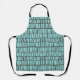 This apron has a geometric design of tiles with rhombus shapes in light blue on a field of grey.