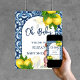 Blue tiles and lemon Amalfi Positano Mediterranean style baby shower welcome sign poster editable template instant digital download.