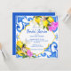 Blue tiles Bougainvillea and lemon Amalfi Positano Mediterranean style bridal shower invitation template Morocco style carved border.