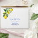 Blue Maiolica tiles lemons Italian bridal shower addressed envelopes, Mediterranean themed bridal shower citrus bridal shower matching envelopes