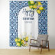 Blue tiles and lemon Amalfi Positano Mediterranean style happy birthday wall tapestry photoshoot background.