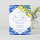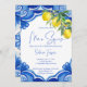 Blue Maiolica tiles lemons Italian bridal shower invitation editable template instant download, Mediterranean themed bridal shower citrus bridal shower invitations, she found her main squeeze