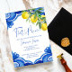 Blue Maiolica tiles lemons Italian bridal shower invitation editable template instant download, Mediterranean themed bridal shower citrus bridal shower invitations