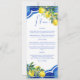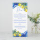 Blue Maiolica tiles lemons Italian bridal shower wedding party menu card, Mediterranean themed bridal shower citrus themed bridal shower party menu cards personalised dinner table decor