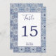 Blue tiles Personalised wedding Table Number