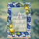 Celebrate the couple with these elegant blue vintage tiles and yellow lemons wedding welcome acrylic signs. This design features vintage blue and cream tiles with realistic lemon watercolor artwork on a frosted faux look background,. Customise with your own details.