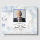 Personalise the elegant Blue Tinted Carnation Celebration of Life Guest Book for the attendees at your memorial, wake or funeral service to sign. Customise it with the name of your deceased loved one, picture, birthday and day of death. This classy custom flowery guestbook features a pretty digitally watercolor painted floral photograph of white carnation flower blossom petals with a light pale blue tint.