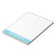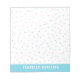 Girly notepad with tiny colourful confetti scattered over the page and your name in a font against a light blue border at the bottom of the page. Fun personalised notepad with your name in light sky blue and white and a tonne of mini confetti in pink, purple, yellow, mint green, and turquoise to give your notes a fun and personal touch. You'll love jotting down notes, things to do, things to remember, or just doodling on this girly notepad in cute colours with countless tiny little dots.