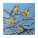 Hand drawn vector illustration of 4 blue tit birds in winter