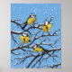 Hand drawn vector illustration of 4 blue tit birds in winter
