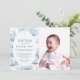 Blue Toile Baptism Thank You Card, Photo Design Invitation