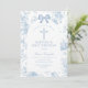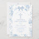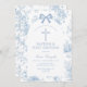 Blue Toile de Jouy Baptism & First Birthday Bow Christening Invitation