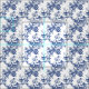 An intricate blue and white toile pattern featuring blooming flowers and winding branches, illustrated in a detailed vintage engraving style.
