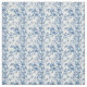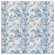 An intricate blue and white toile pattern featuring winding branches, blooming flowers, and delicate leaves in a traditional vintage engraving style.
