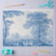 Blue Toile French Blue and White Coastal Grandmother Grandmillenial Design Vintage Antique Decoupage Artwork Art Print of a Painting