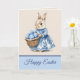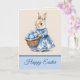 Blue Toile Mother Rabbit n Basket of Easter Eggs Card