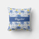 Blue Toile Palm Trees Lemons Monogram Name Cushion