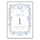 A stylish wedding table number that features pretty chinoiserie graphics in soft dusty blue tones and a calligraphy font. It can be personalised with the initials of the couple, their names and their wedding date. Pair with anything in the FLORIA collection for a cohesive look. NOTE: you will need to order each table number separately.