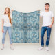 This is a fleece blanket that has blue tone in colour with floral designs.