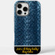 The textured surface showcases an intricate pattern of snake skins, glimmering in vivid blue hues. Each scale reflects light in a way that enhances the rich details and vivid colours. MONOGRAM ADD YOUR NAME