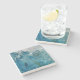 The coasters are gorgeous, a quality feel and heavy weight. They look like a precious archeological find. A rustic stone juxtaposed with a modern floral black and white print. I like the way the print goes slightly imperfect on the cut stone edges giving them a kind-of natural beauty.