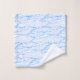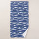 Blue and white bath towel set with illustrative, graphic pattern of waves. Pattern inspired by traditional japanese patterns and indigo fabrics.