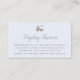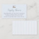 Blue enclosure card for display shower for boy baby features a toy train and blue stripes on back of card. Coordinates with baby shower tier cake invitation.