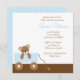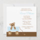 Simply sweet baby shower invitation or new baby birth or adoption announcement features an adorable vector illustration of little brown bear on a carriage. Available in blue, pink or green. Custom colours available by request.