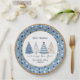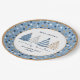 Blue Trees Dots Modern Text Christmas Holiday Paper Plate