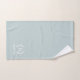 Blue and white trellis patterned bath towel set personalised with your family monogram or other text in a rustic laurel branch. Use the design tools to choose any background colours, edit the text fonts and colours or upload your own photos to create a one of a kind design. The perfect touch for your modern farmhouse bathroom decor!