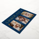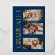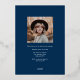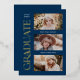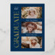 This stylish graduation announcement also doubles as an invitation to a graduation party. The front features the word graduate in the foil colour of your choice on a blue background. It also has space for three photos as well as the graduate's name, class year, and school. The back of the card has space for another photo as well as details for your graduation party.